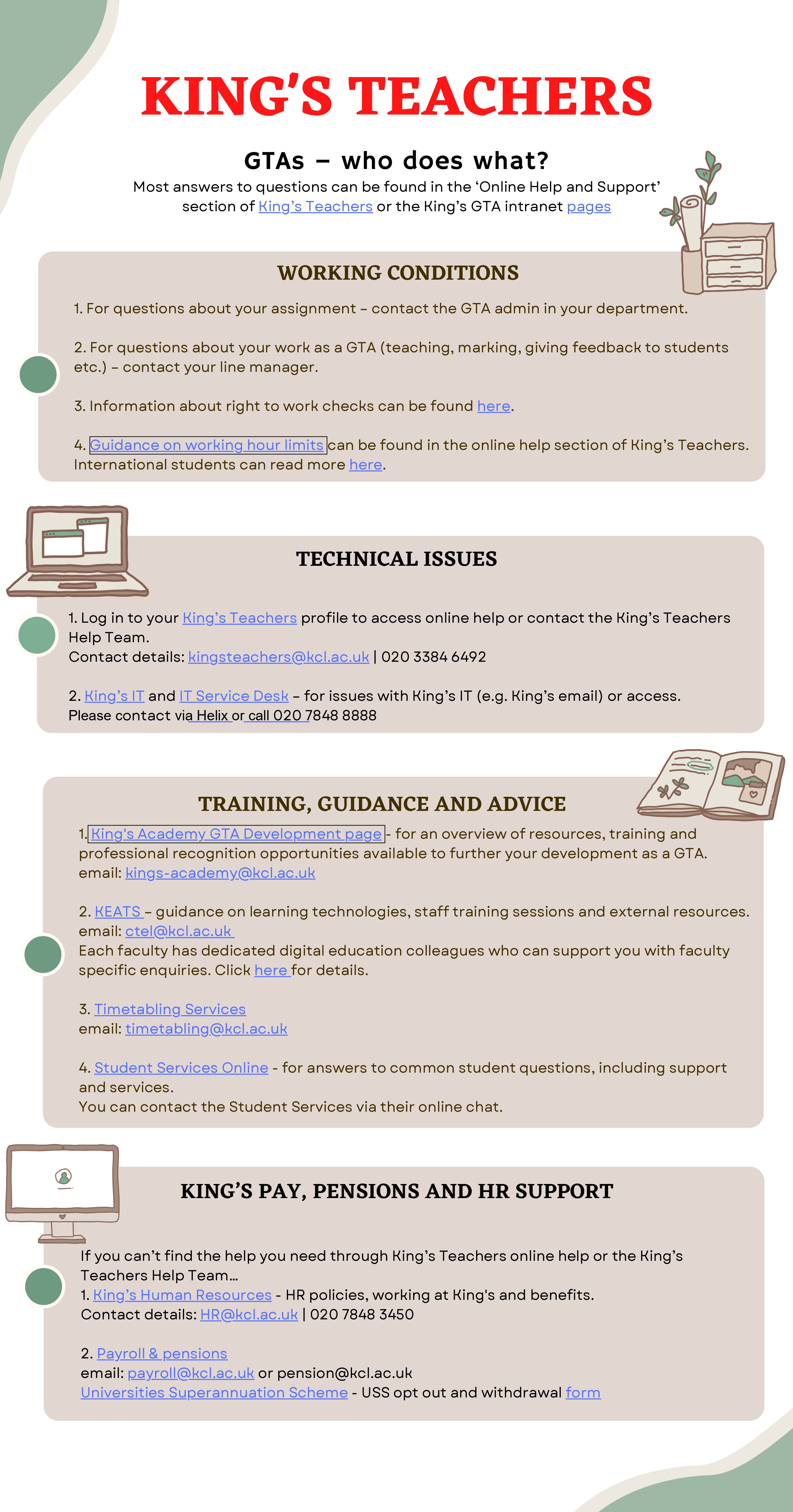 King's Teachers - Useful Contacts Print